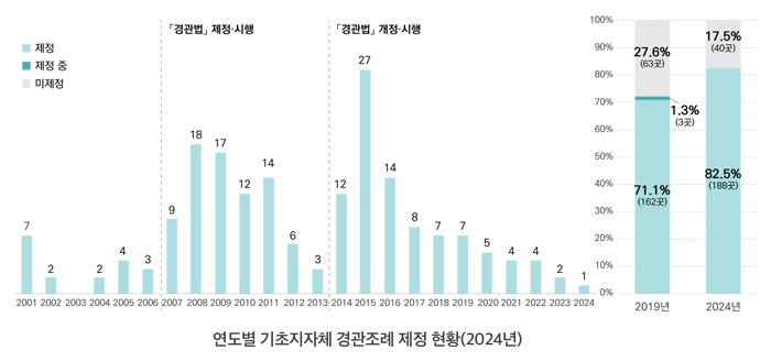 광역지자체는 모두, 기초지자체는 188곳이 경관조례 제정